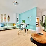 公寓设施包括电视,阳台和咖啡机/煮茶器. 这套公寓为4位客人提供空间. 所有的洗澡间都配备淋浴,吹风机和浴巾.